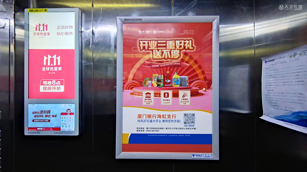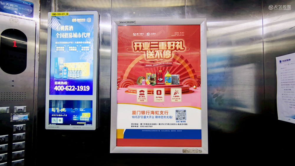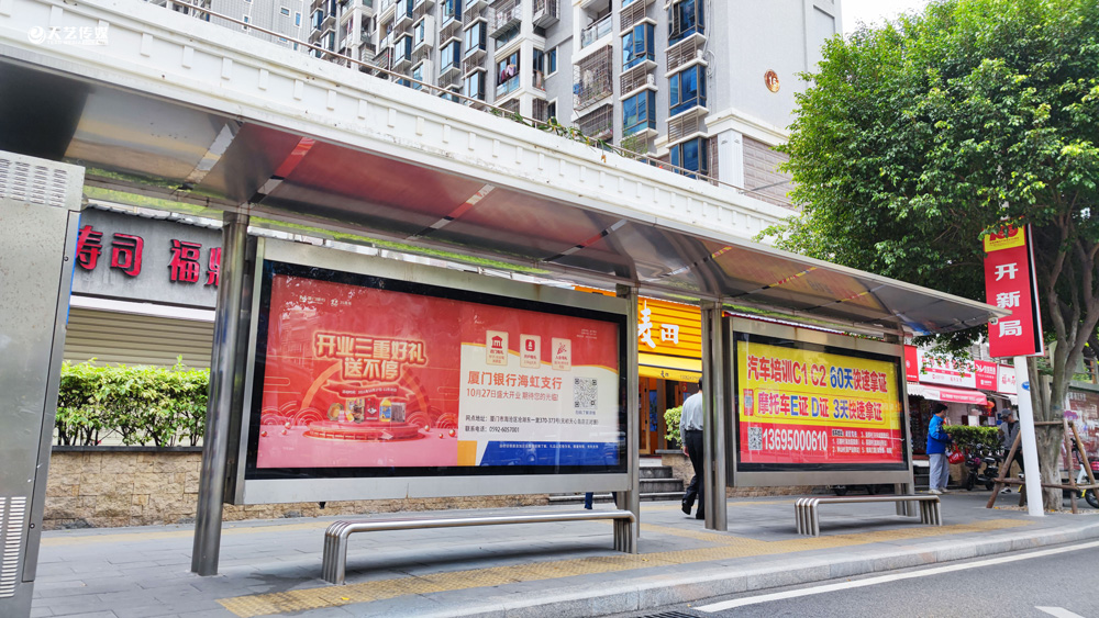 此次廈門銀行海虹支行選擇與天藝傳媒進(jìn)行戶外媒體投放的合作,投放海滄區(qū)(以海滄的生活區(qū)、海虹支行周邊區(qū)域?yàn)橹?的多個戶外廣告媒體,包括公交候車亭媒體、電梯框架廣告、社區(qū)公告欄媒體及社區(qū)出入口的道閘媒體等。