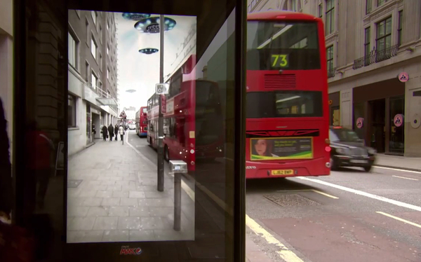 數(shù)字戶外,創(chuàng)意無限。比方說,百事在倫敦的候車亭屏幕上做過的AR廣告,讓等車的人可以看到UFO、飛人、老虎等動態(tài)畫面,看起來就像是真的一樣,如果事先沒有準(zhǔn)備的話,人可能會被嚇到。