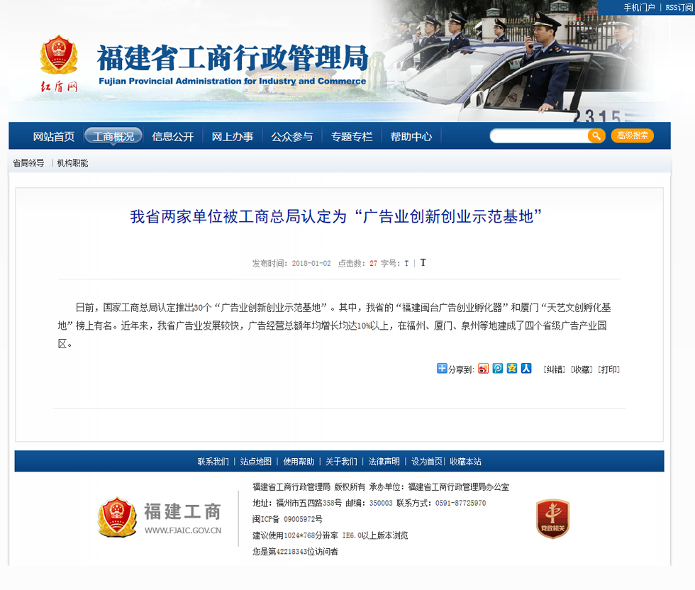 天藝文創(chuàng)被工商總局認定為“廣告業(yè)創(chuàng)新創(chuàng)業(yè)示范基地”