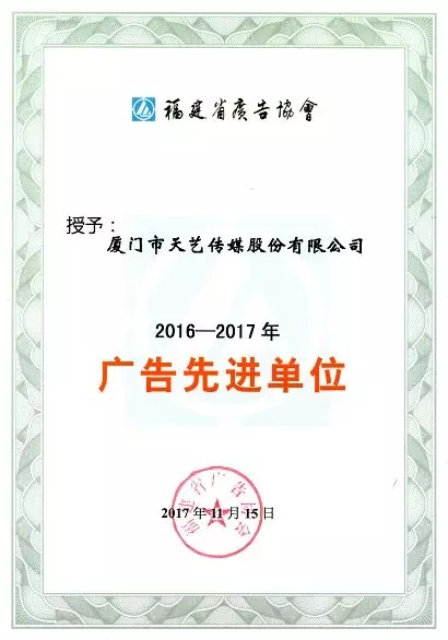 日前,在國(guó)家工商行政管理總局辦公廳出臺(tái)的《關(guān)于進(jìn)一步推進(jìn)廣告業(yè)創(chuàng)新創(chuàng)業(yè)有關(guān)工作的通知》(辦字【2017】209)中,由廈門市天藝傳媒股份有限公司創(chuàng)辦的“天藝文創(chuàng)孵化基地”被評(píng)定為國(guó)家級(jí)廣告業(yè)創(chuàng)新創(chuàng)業(yè)示范基地,成為廈門市2017年度唯一一家獲評(píng)廣告業(yè)創(chuàng)新發(fā)展優(yōu)秀典型企業(yè)的單位。
